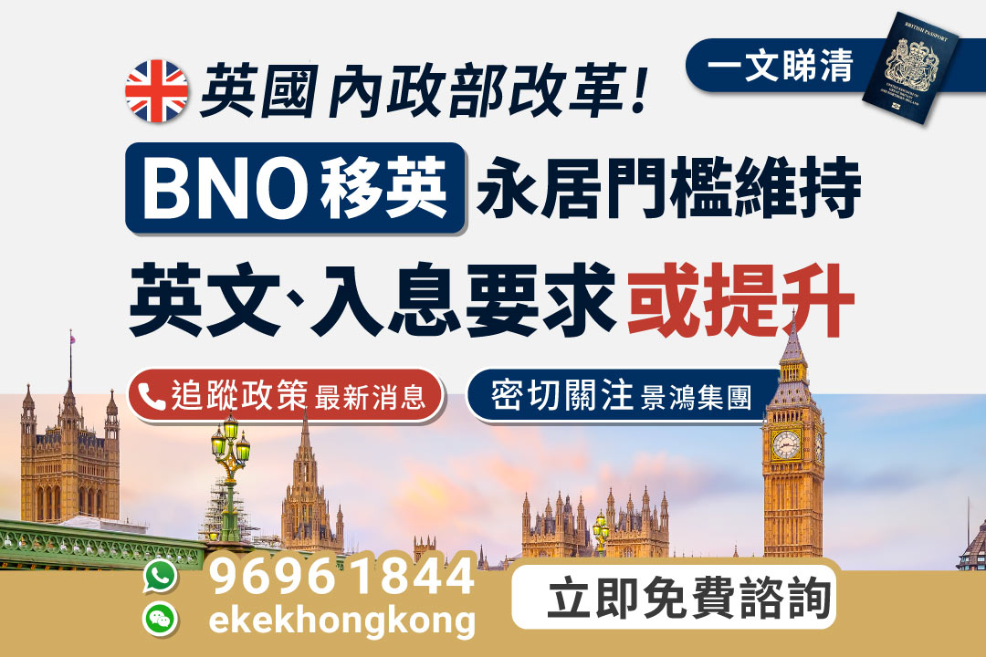 一文睇清:英國內政部改革!BNO移英永居門檻維持 英文、入息要求或提升