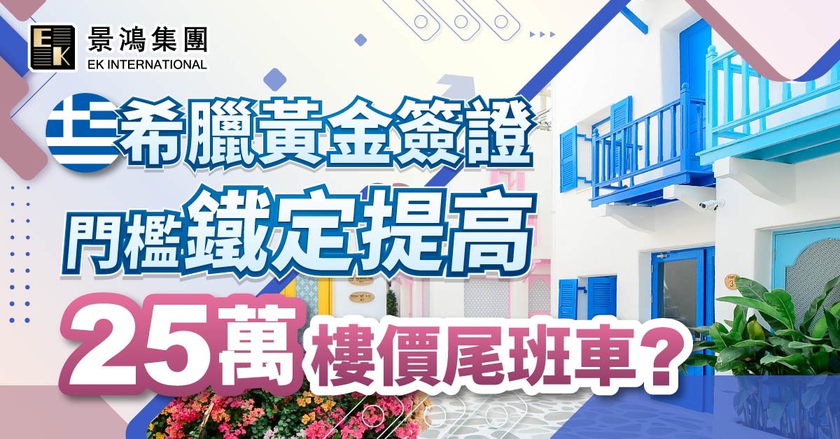 希臘黃金簽證門檻鐵定提高 25萬樓價尾班車?