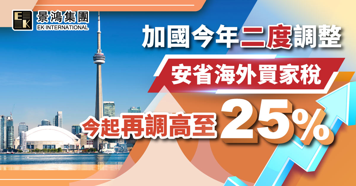 今年二度調整!安省海外買家稅 今起再調高至25%!
