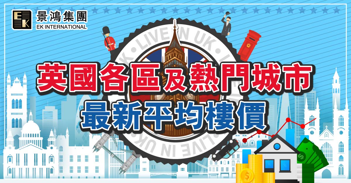 英國各區及熱門城市最新平均樓價