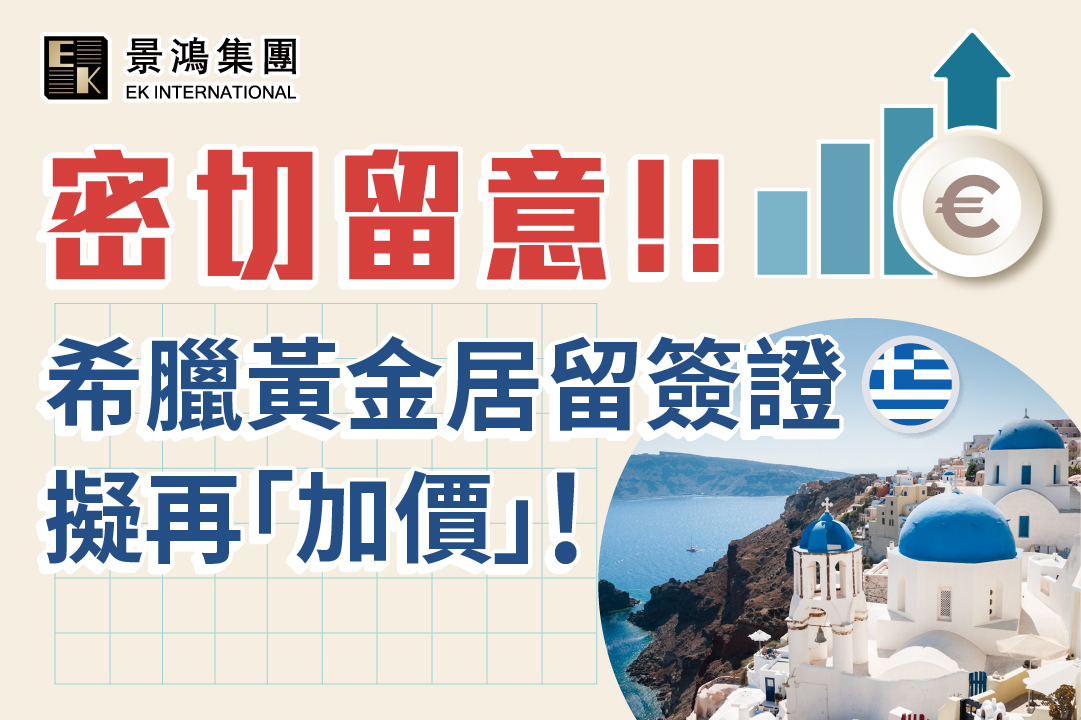 密切留意!! 希臘黃金居留簽證 擬再「加價」!
