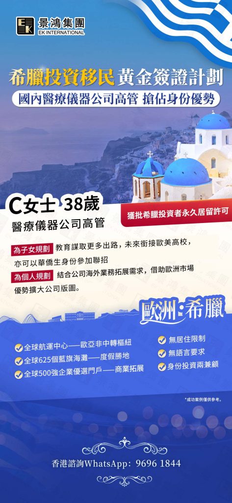 對於許多高資產家庭,海外身份不只是移民,更是 教育規劃 + 事業布局 的雙重保障。以下是一位成功案例,幫助你判斷希臘投資移民是否適合自己。