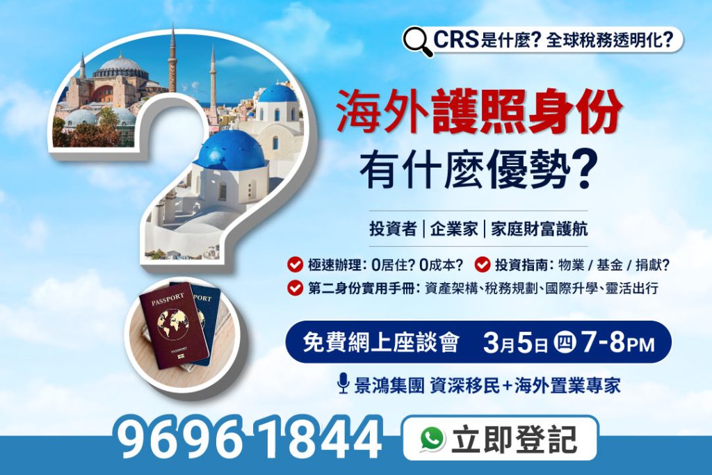 🗣️專家即場解密,逐一拆解最新全球架構佈局對策,教你挑選認受性高、申請速度快、最適合你自身情況的環球身份計劃!